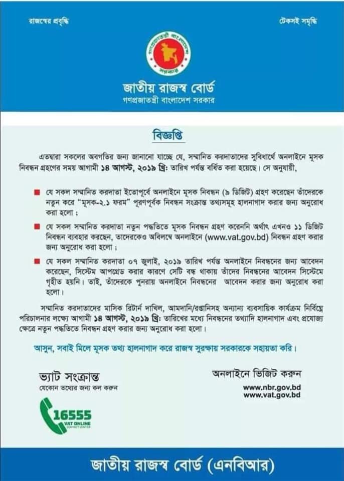 ভ্যাট নিবন্ধন বিজ্ঞপ্তি